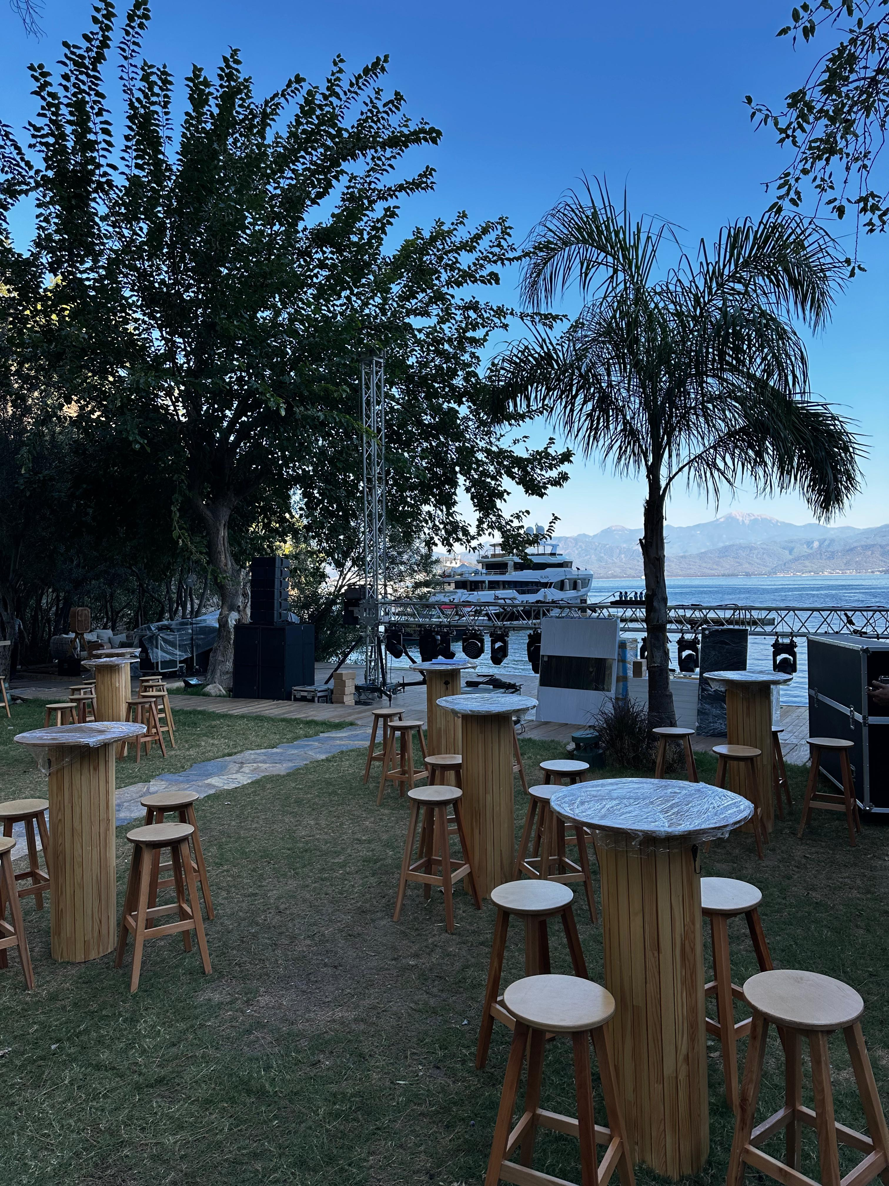 Doğal güzellikleriyle öne çıkan Fethiye’de gerçekleştirilen bu özel etkinlikte, Kirala Bizden olarak hem estetik hem de konfor açısından özenle seçilmiş ekipmanlarımızla yer aldık. Etkinlik alanına sıcak bir atmosfer kazandıran qua bistro masalar, ahşap bar tabureleri ve yuvarlak puflar, misafirlere keyifli bir oturum deneyimi sundu.