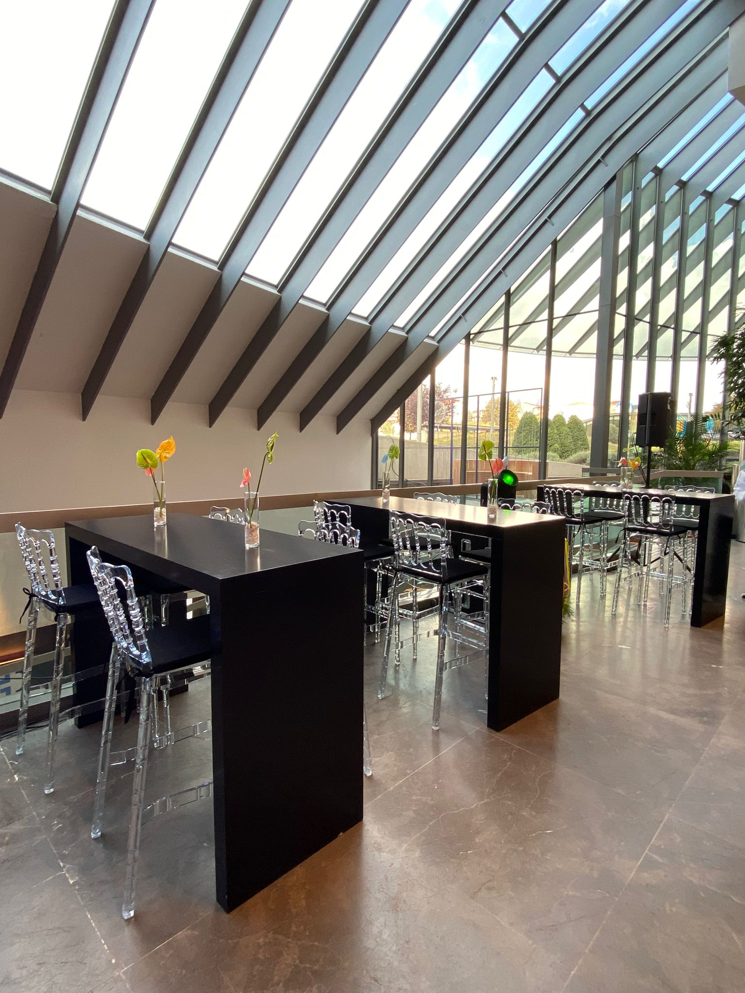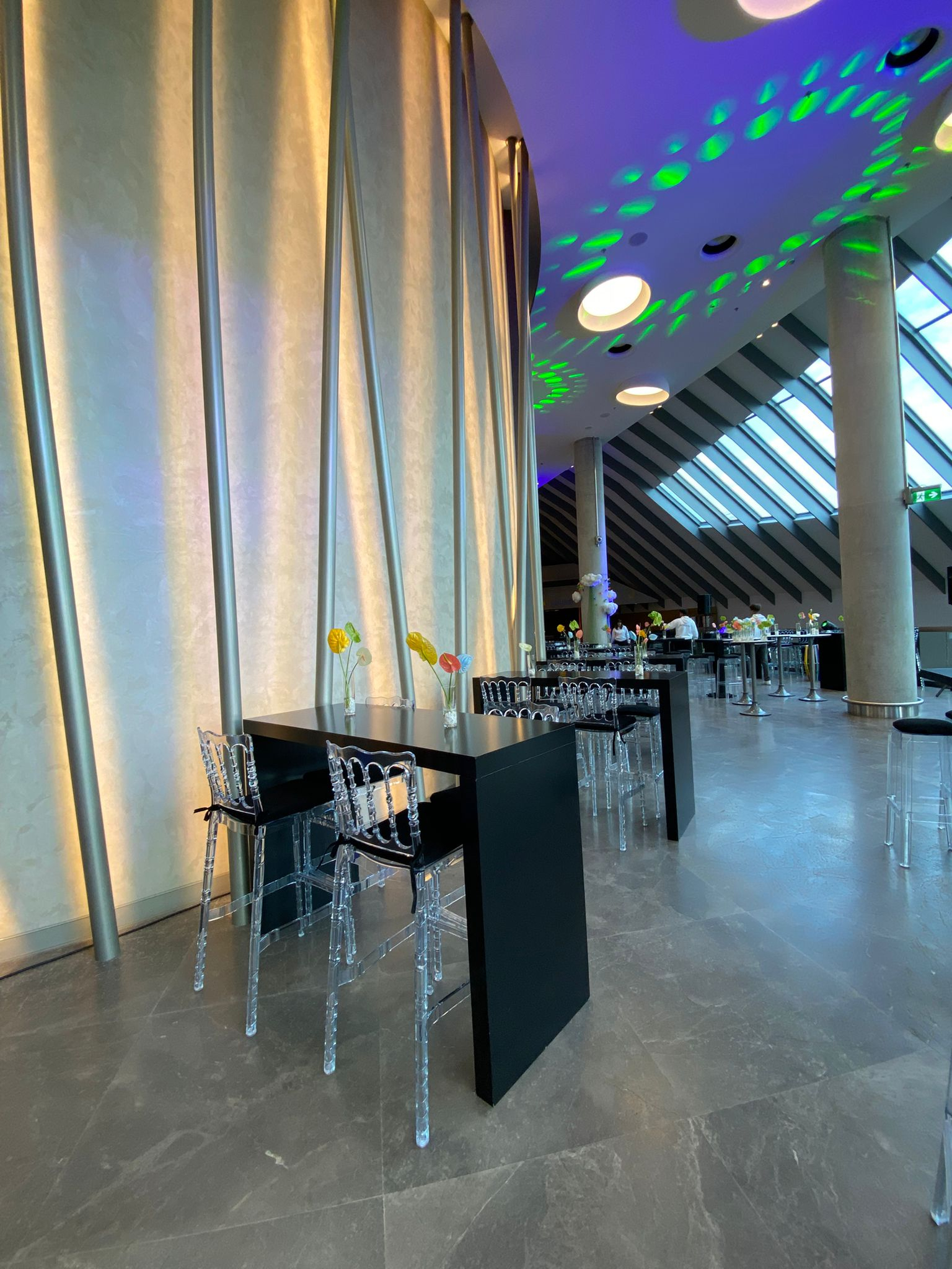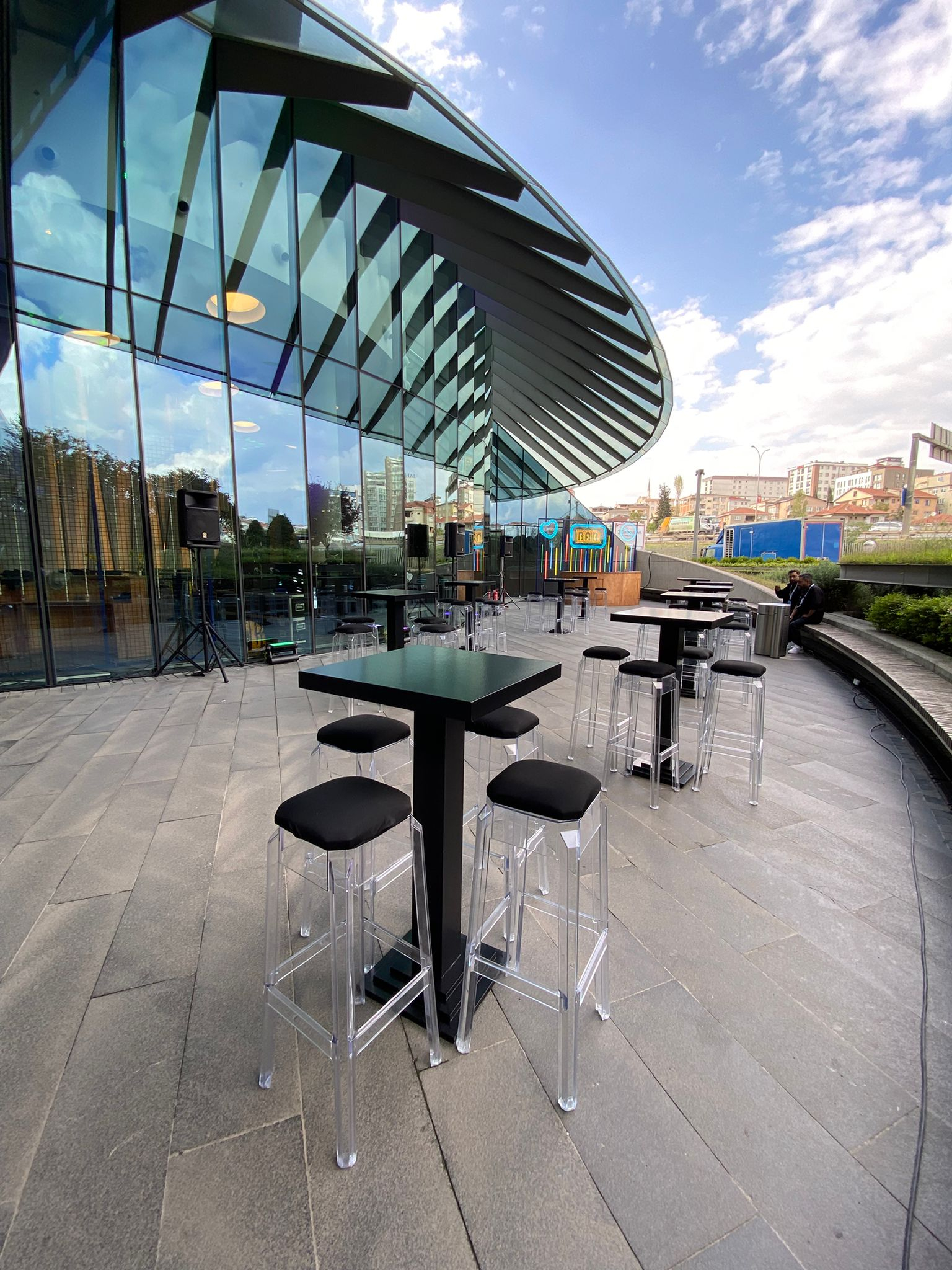Etkinliğe zarif bir görünüm kazandıran tabankonik bistro masalar, konik ayak yapısı ve sağlam tablasıyla konforlu bir kullanım sundu. Siyah rengiyle kurumsal ambiyansla bütünleşti.