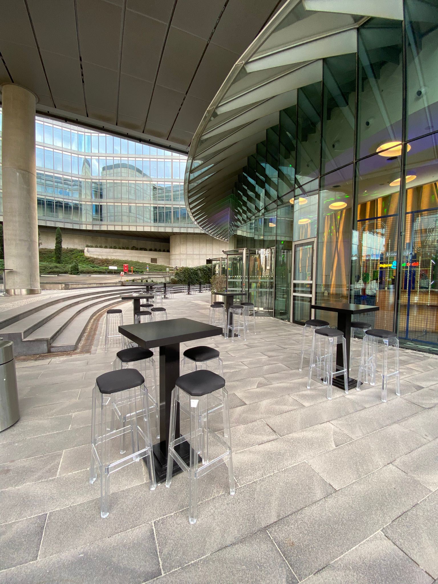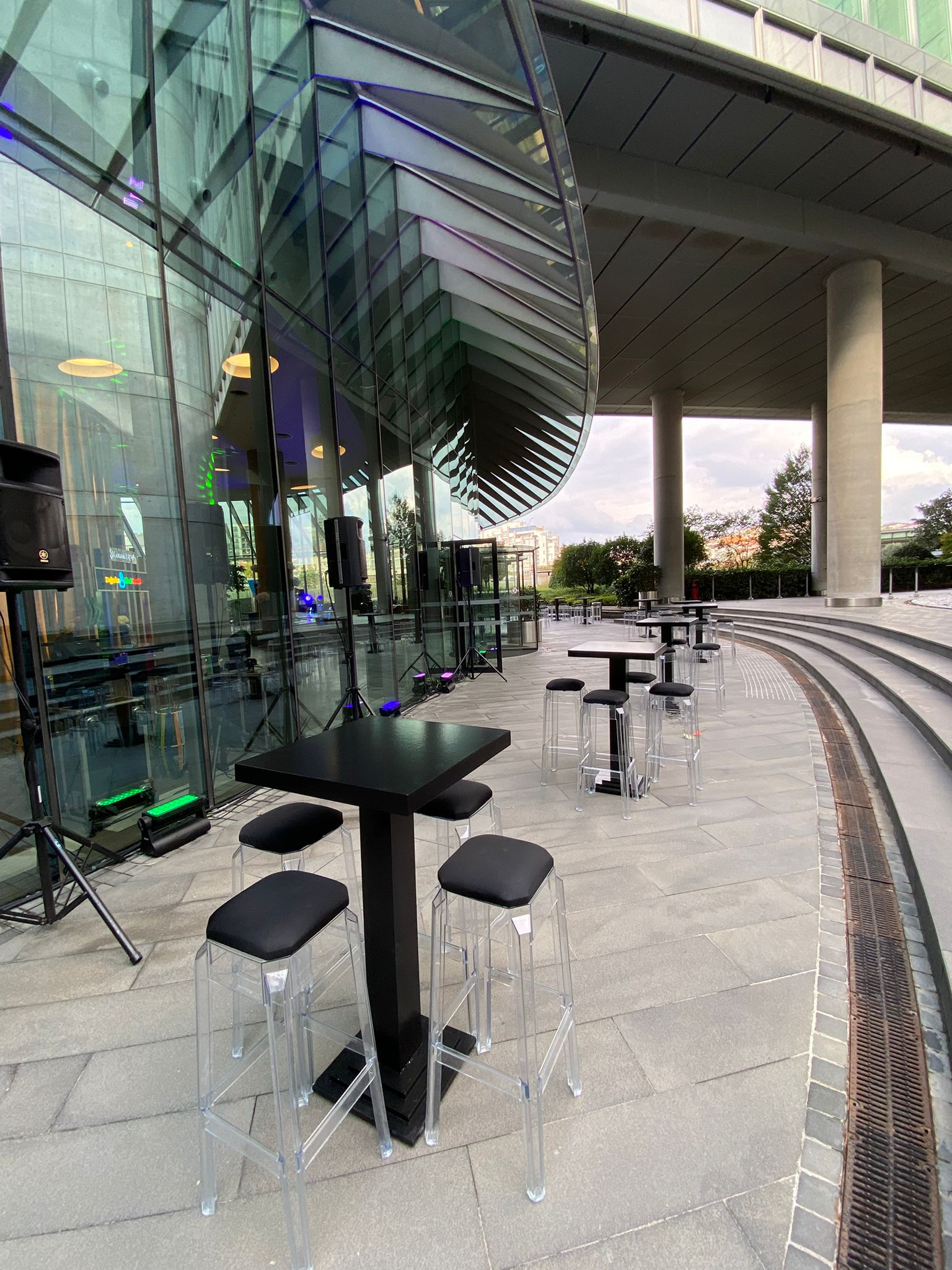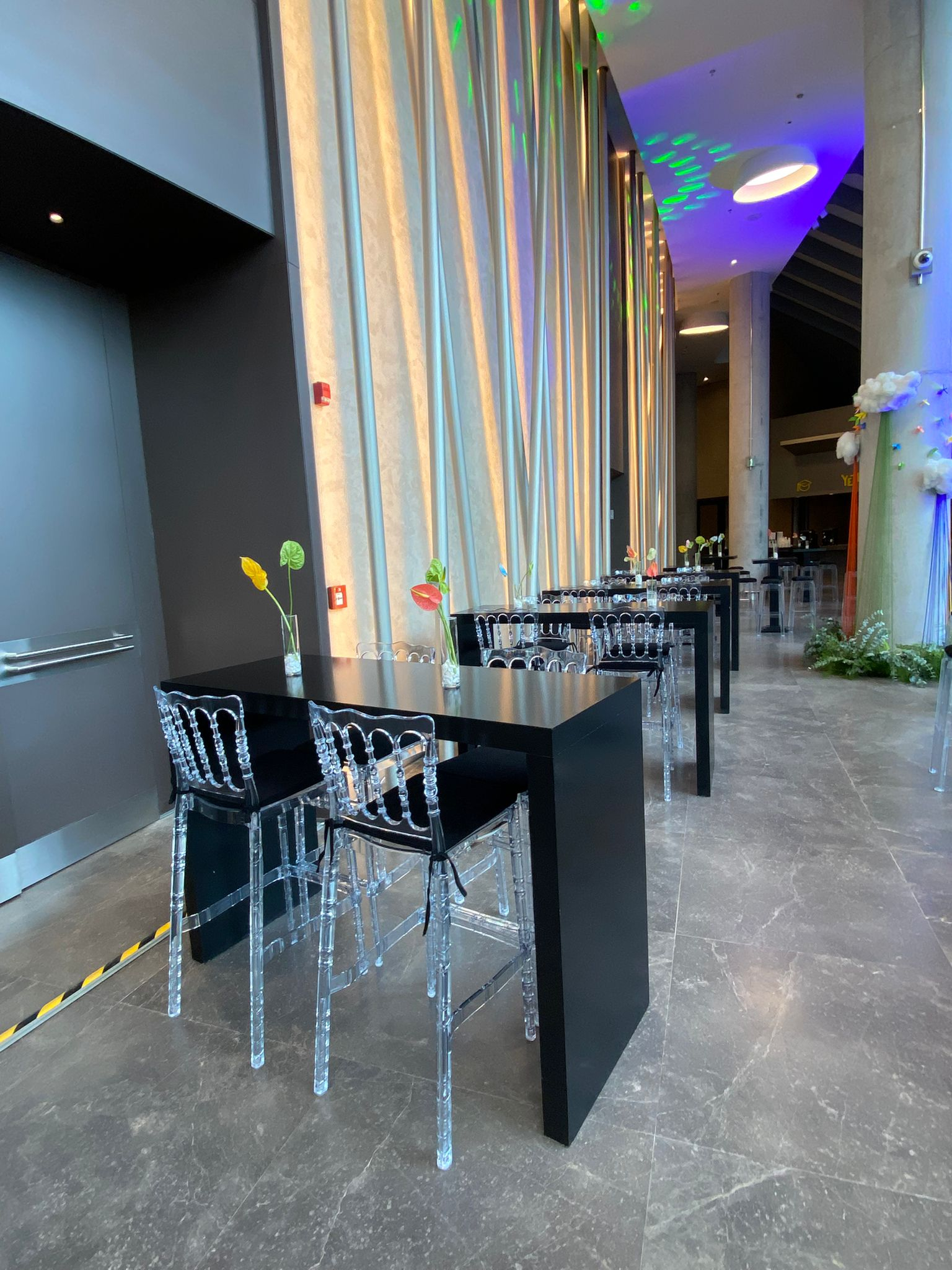 Etkinliğe zarif bir görünüm kazandıran tabankonik bistro masalar, konik ayak yapısı ve sağlam tablasıyla konforlu bir kullanım sundu. Siyah rengiyle kurumsal ambiyansla bütünleşti.