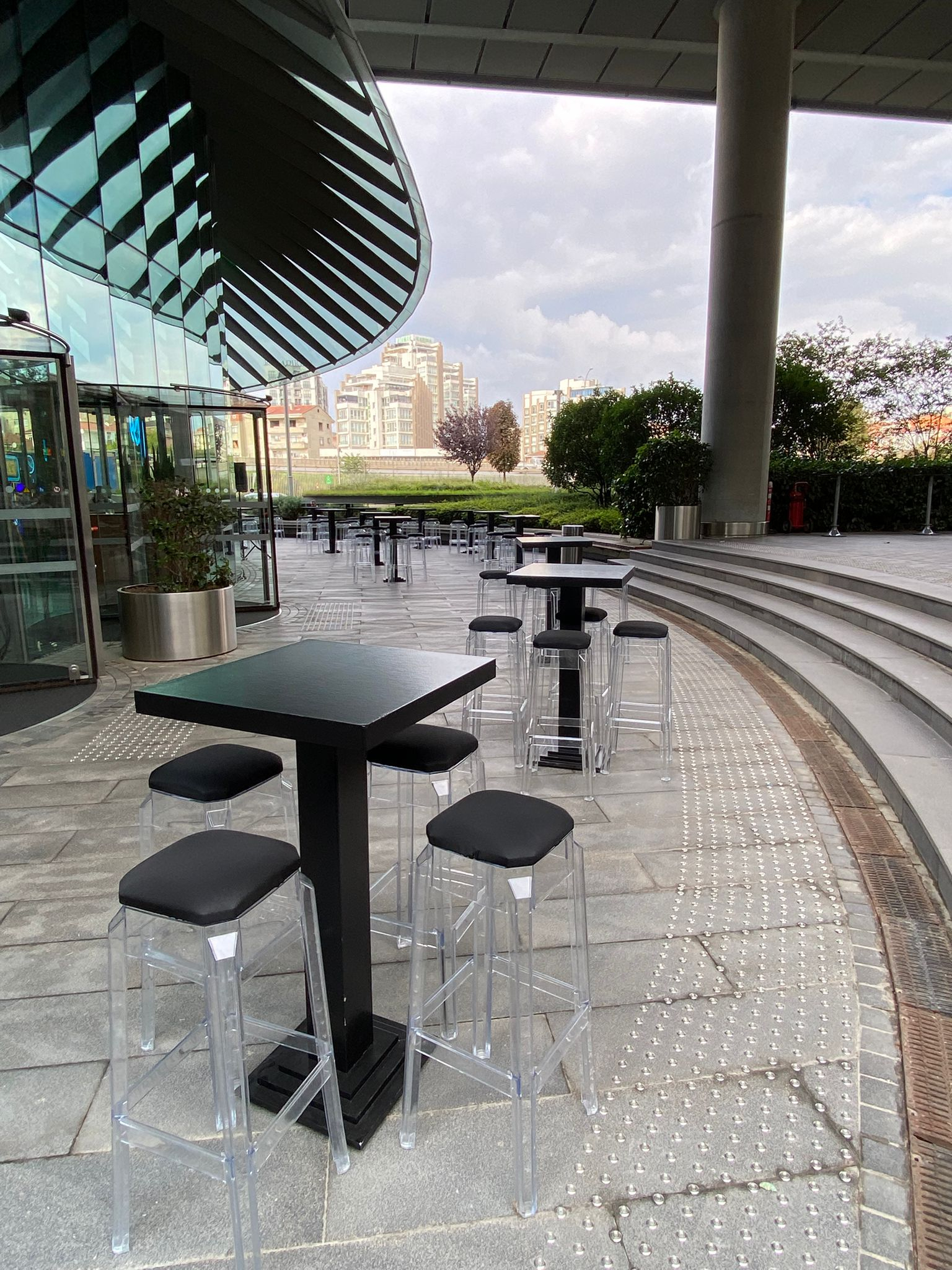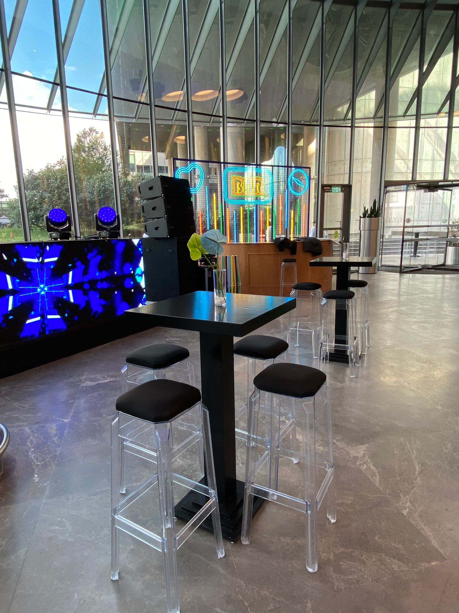 Yüksek oturum alanlarında maksimum konfor sunan pleksi fox tabureler, modern ve şeffaf tasarımıyla mekâna ferahlık kattı. Bu sayıdaki büyük kurulum, her alanda homojen bir deneyim oluşturdu.