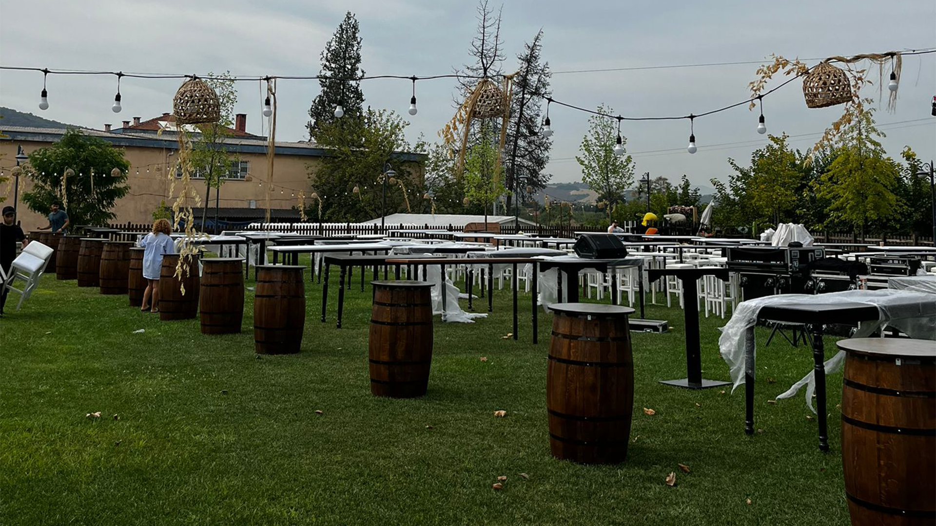 Yalova’da gerçekleştirilen bu özel etkinlik, doğayla iç içe ve sofistike bir atmosfer yaratmayı hedefleyen tasarımıyla dikkat çekti. Kirala Bizden olarak sunduğumuz şık ve işlevsel ekipmanlar sayesinde etkinlik, estetik ve konforun mükemmel bir buluşması oldu. Ahşap fıçı varil ve bistro masalarla donatılan alan, misafirlere hem rahat hem de göz alıcı bir ortam sundu.